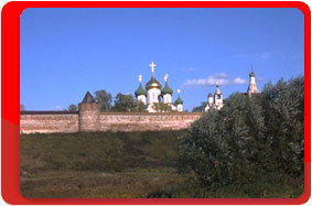 On coming to Suzdal you would hardly figure out that you are in town, for everywhere there are churches, wooden and half-brick private houses with vegetable gardens, and there is almost country-side quietness. But it is therein that the charm of Suzdal lies. Not only did Suzdal retain the spirit of olden times but it also remained within the XVIII century town boundaries.